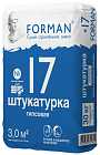 Штукатурка ФОРМАН 17 гипсовая влагостойкая 30 кг применяется для выравнивания стен в помещениях с нормальной и повышенной влажностью под последующую отделку в МОПах, холлах, паркингах