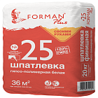 Шпатлевка гипсо-полимерная финишная ФОРМАН 25 предназначена для чистовой отделки оштукатуренной поверхности под последующее нанесение любых декоративных материалов в помещениях с нормальной влажностью при условии легкости работы со смесью. Повышенная жизнеспособность готовой смеси. Подходит для машинного нанесения. В основе продукта экологически чистые гипсовые вяжущие собственного производства.
