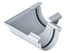 Муфта желоба предназначена для соединения отдельных желобов в единую систему. На внутренней стороне муфты имеются специальные ограничителис надписью "STOP", которые специально ограничивают ту зону, в пределах которой нельзя соединять элементы. Это объясняется тем, что в процессе эксплуатации водостоков возможны линейные расширения. При плотной состыковке происходит изменение формы водосточной системы, поэтому необходимо оставлять зазор в 2 - 3 см между желобами. Также на внутренней стороне имеются ребра жесткости, которые предназначены для лучшей фиксации концов желоба и предотвращения его перекоса при монтаже. Именно поэтому они выполняют функцию дополнительных ребер жесткости.