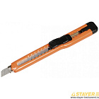 Нож с выдвижным сегментированным лезвием, пластмассовый, упрочненный, 9 мм – это нож, который используется для разрезания бумаги, картона и других похожих материалов. Данный нож снабжен корпусом из прочной пластмассы, что продлевает срок службы инструмента, и используется со сменными лезвиями 9 мм. Замена лезвий производится через хвостовую часть ножа.