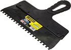 Благодаря зубчатой кромке шпатель идеально подходит для работы со строительными и клеевыми смесями