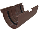 Муфта желоба предназначена для соединения отдельных желобов в единую систему. На внутренней стороне муфты имеются специальные ограничителис надписью "STOP", которые специально ограничивают ту зону, в пределах которой нельзя соединять элементы. Это объясняется тем, что в процессе эксплуатации водостоков возможны линейные расширения. При плотной состыковке происходит изменение формы водосточной системы, поэтому необходимо оставлять зазор в 2 - 3 см между желобами. Также на внутренней стороне имеются ребра жесткости, которые предназначены для лучшей фиксации концов желоба и предотвращения его перекоса при монтаже. Именно поэтому они выполняют функцию дополнительных ребер жесткости.